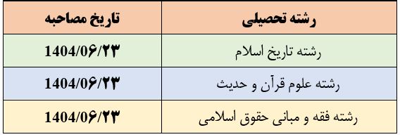 دانشگاه بین المللی مذاهب اسلامی ضمن تبریک به پذیرفتهشدگان آزمون کتبی اختصاصی طلاب مقطع دکتری سال 1404، شرایط و ضوابط شرکت داوطلبان در مرحله مصاحبه آزمون را به شرح ذیل اعلام مینماید: