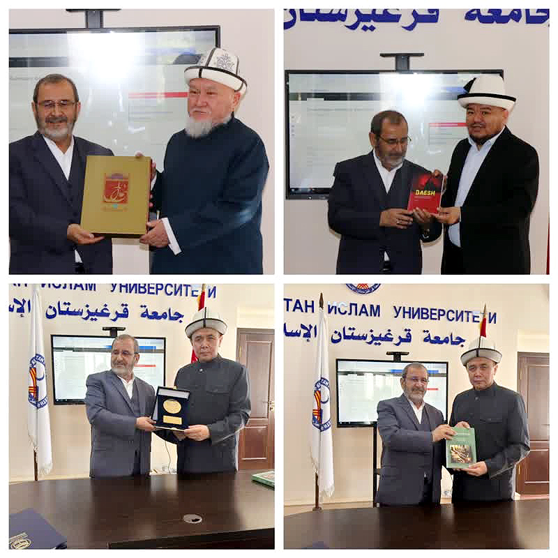 رئیس دانشگاه اسلامی بیشکک ضمن خیرمقدم به رئیس دانشگاه بینالمللی مذاهب اسلامی و هیئت همراه به تاریخچه فعالیت و جایگاه این دانشگاه در زمینه آموزشهای دینی و زبان فارسی اشاره کرد.